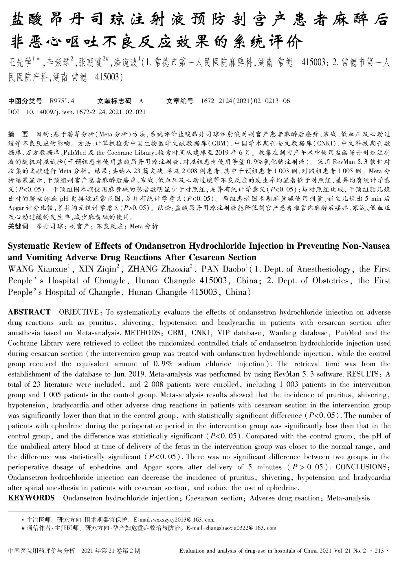 盐酸昂丹司琼注射液预防剖宫产患者麻醉后非恶心呕吐不良反应效果的系统评价