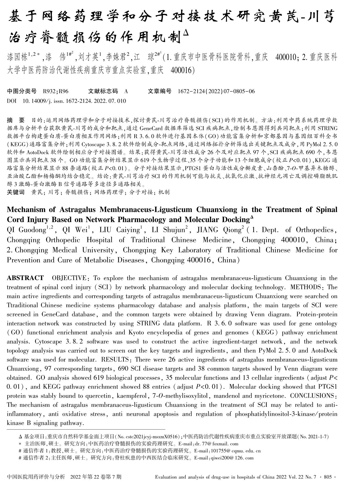 基于网络药理学和分子对接技术研究黄芪-川芎治疗脊髓损伤的作用机制