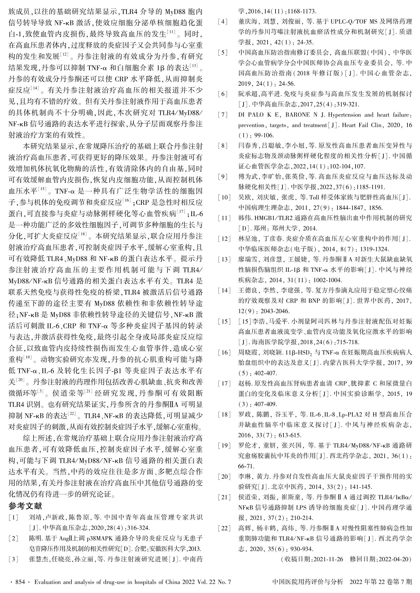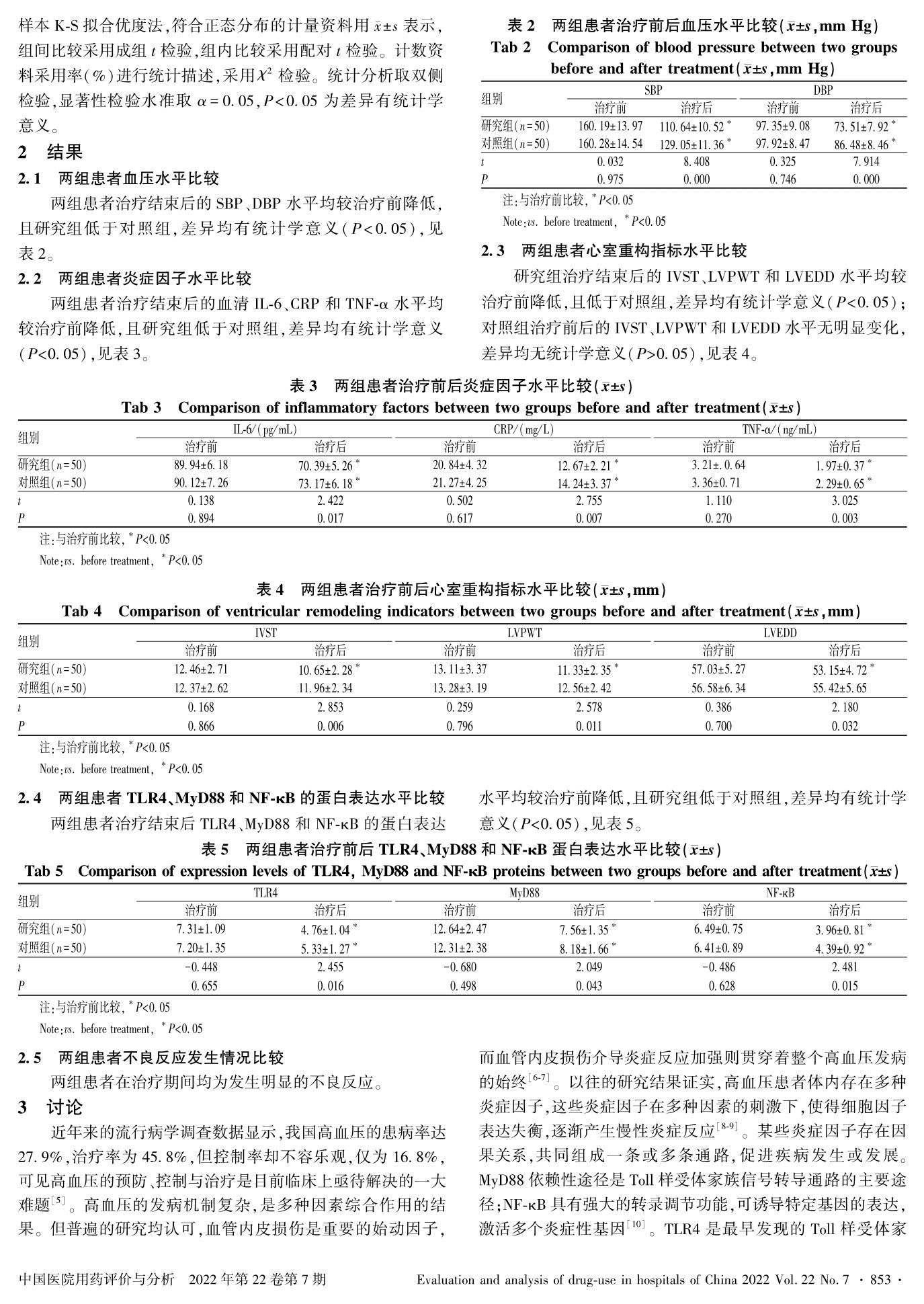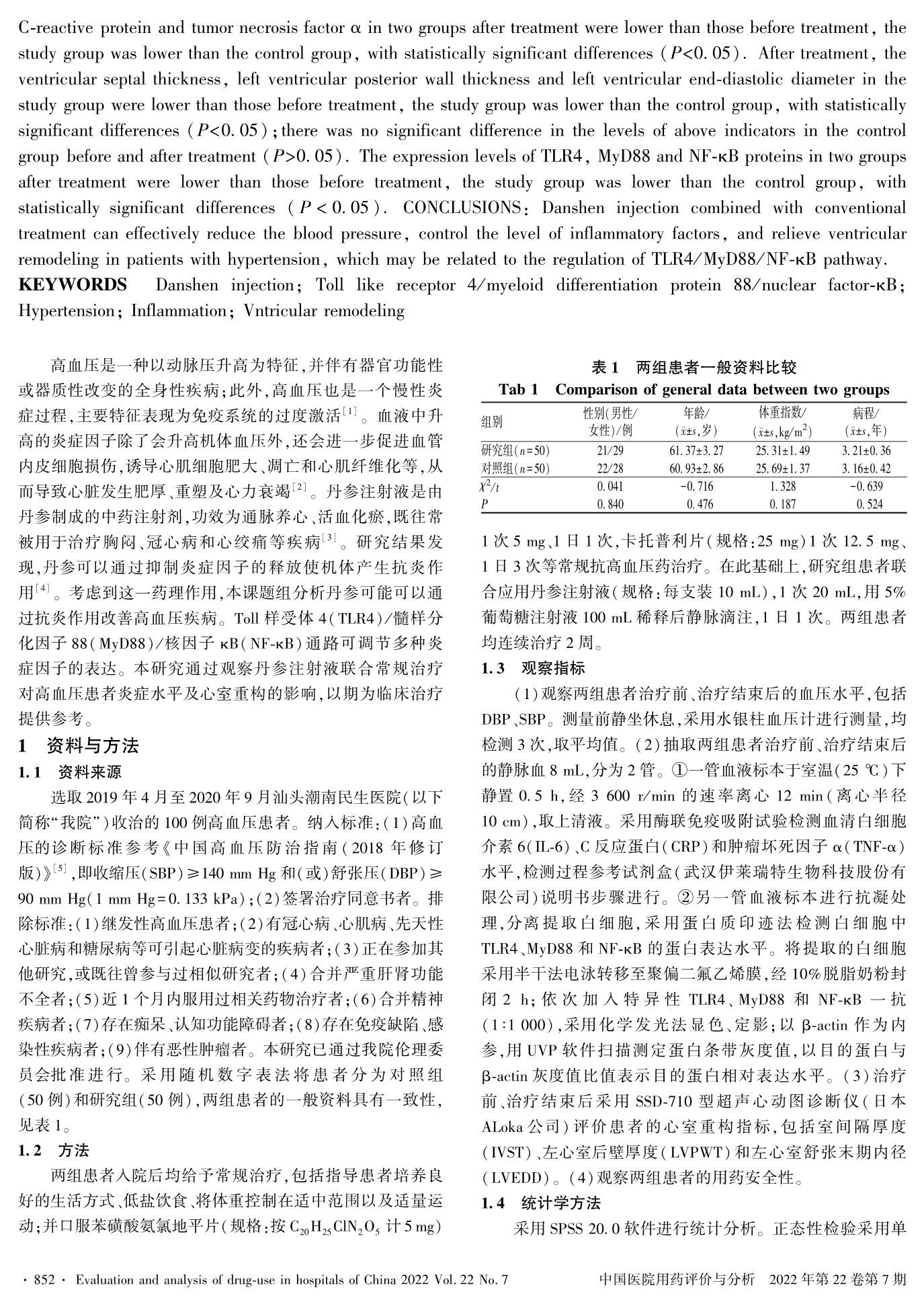 丹参注射液联合常规治疗对高血压患者炎症水平及心室重构的影响
