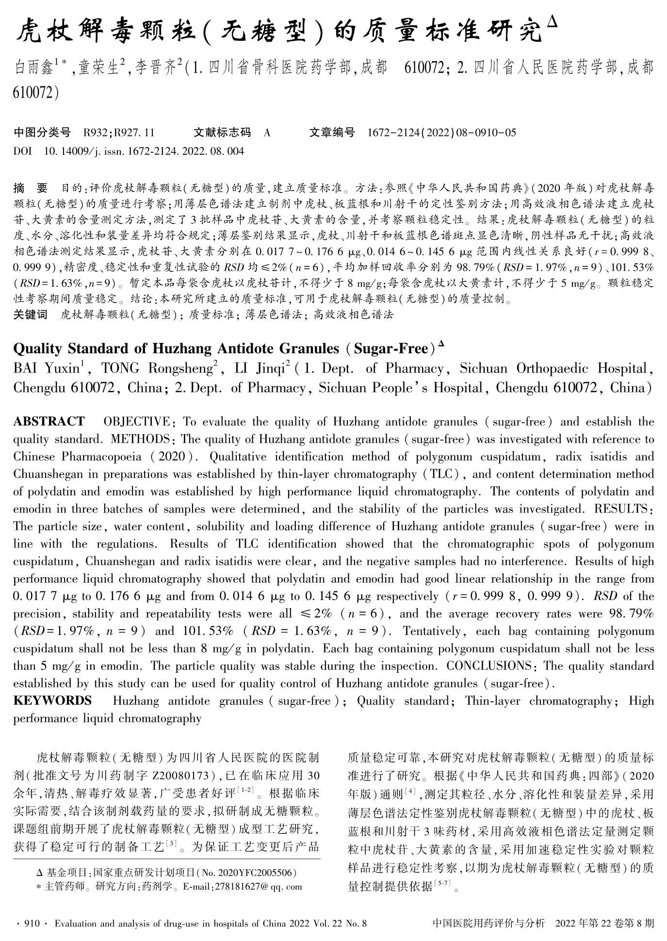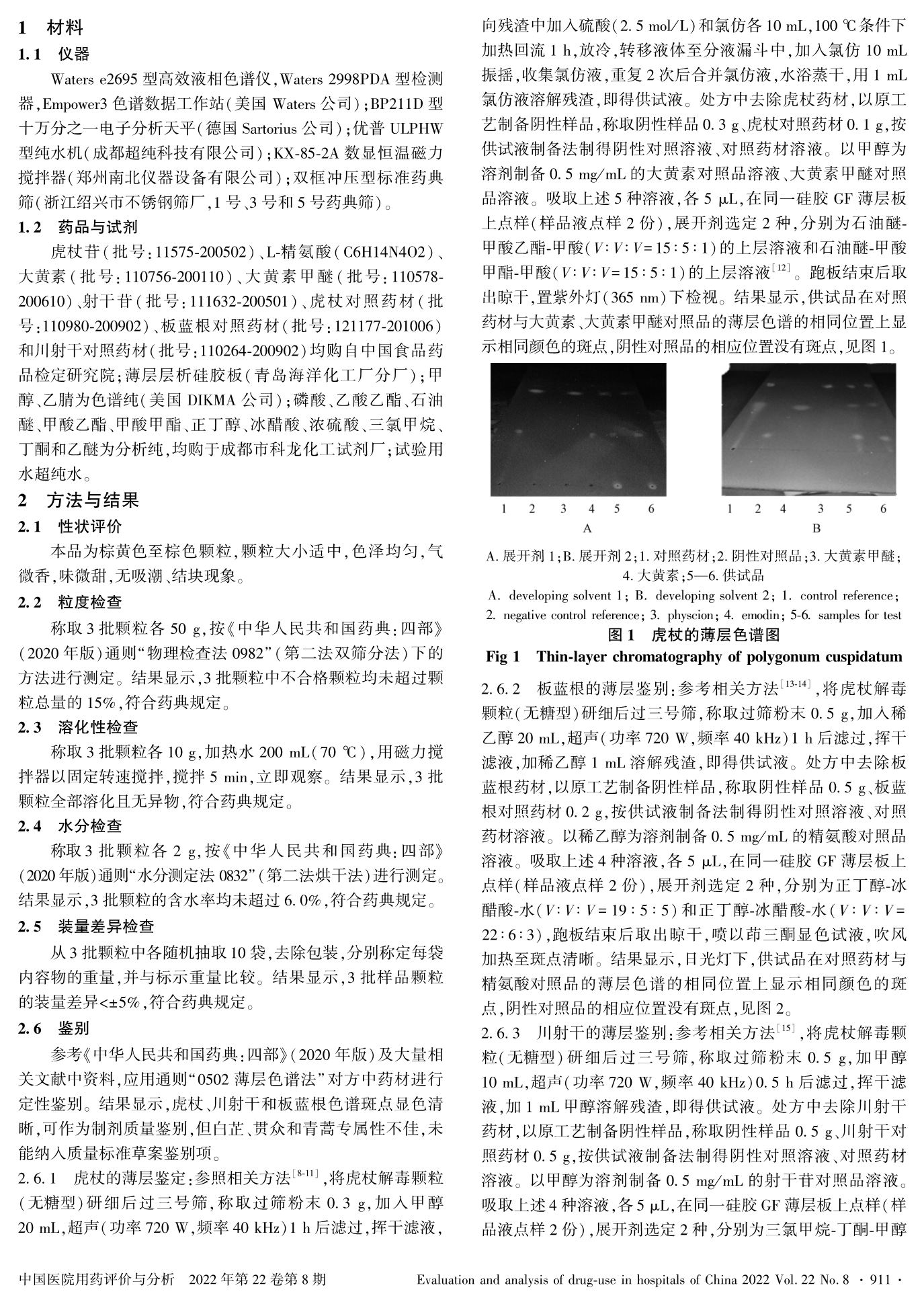 虎杖解毒颗粒(无糖型)的质量标准研究