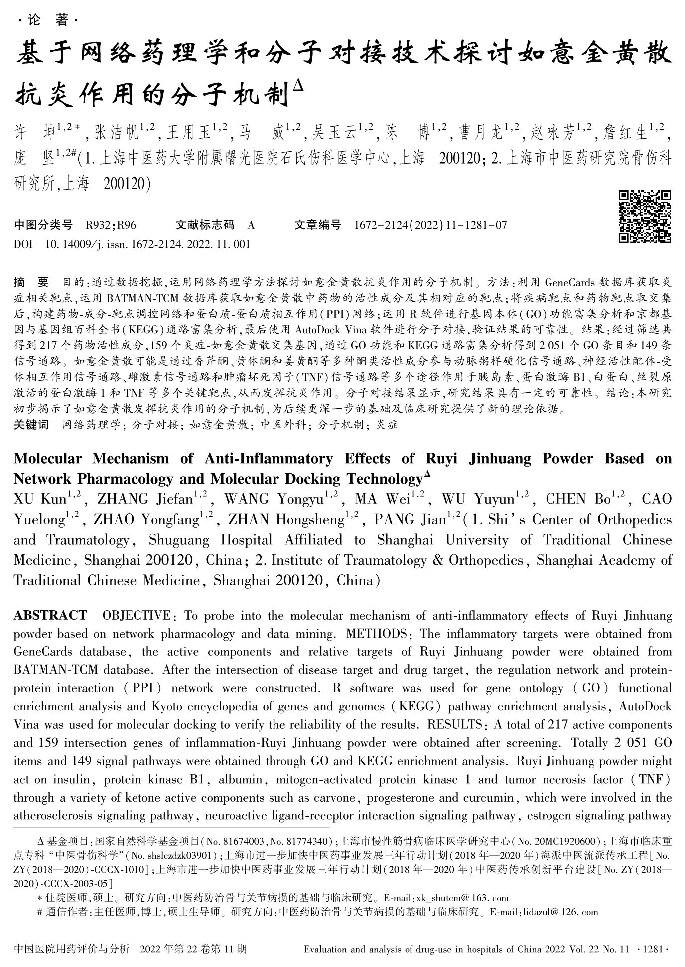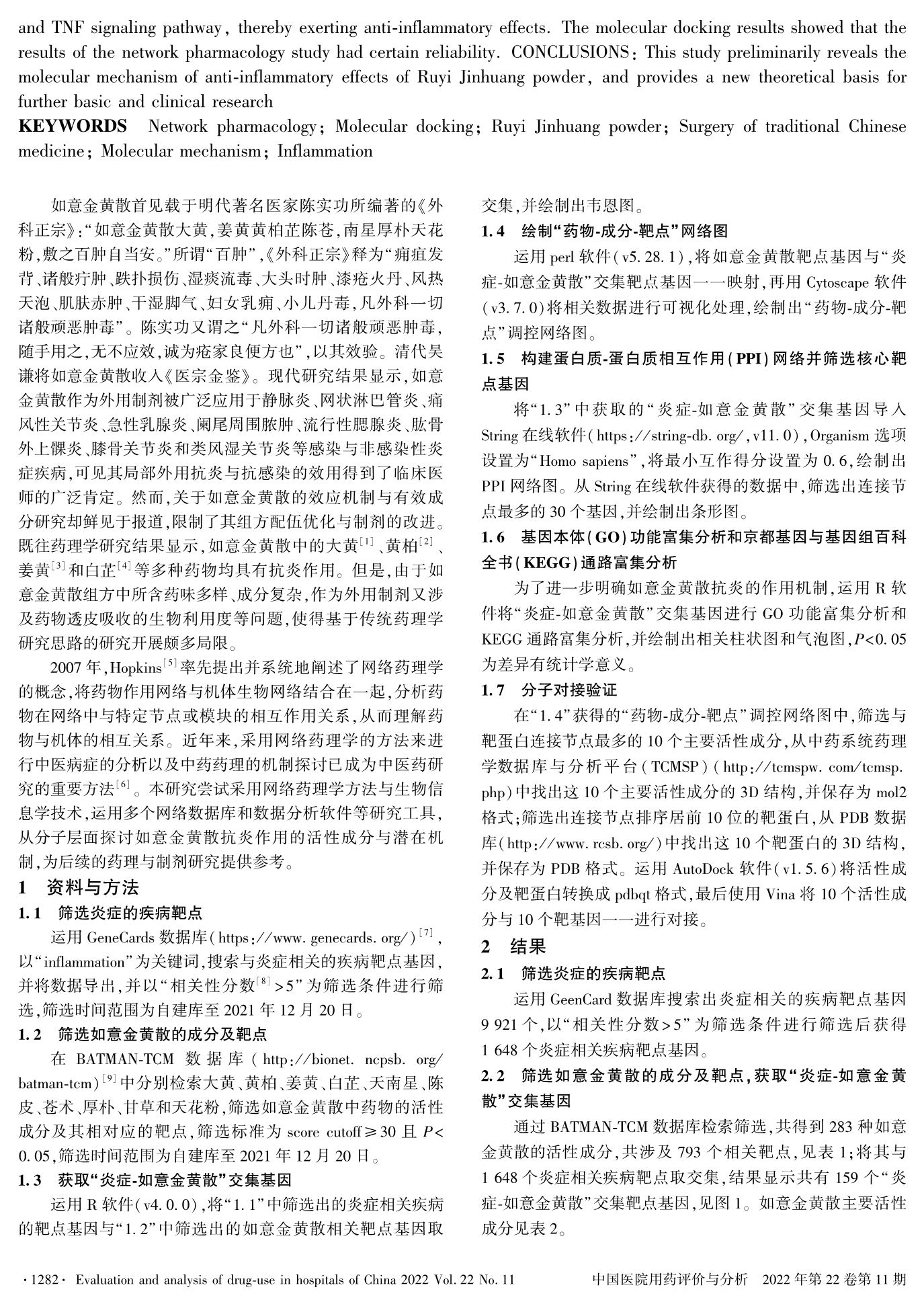 基于网络药理学和分子对接技术探讨如意金黄散抗炎作用的分子机制