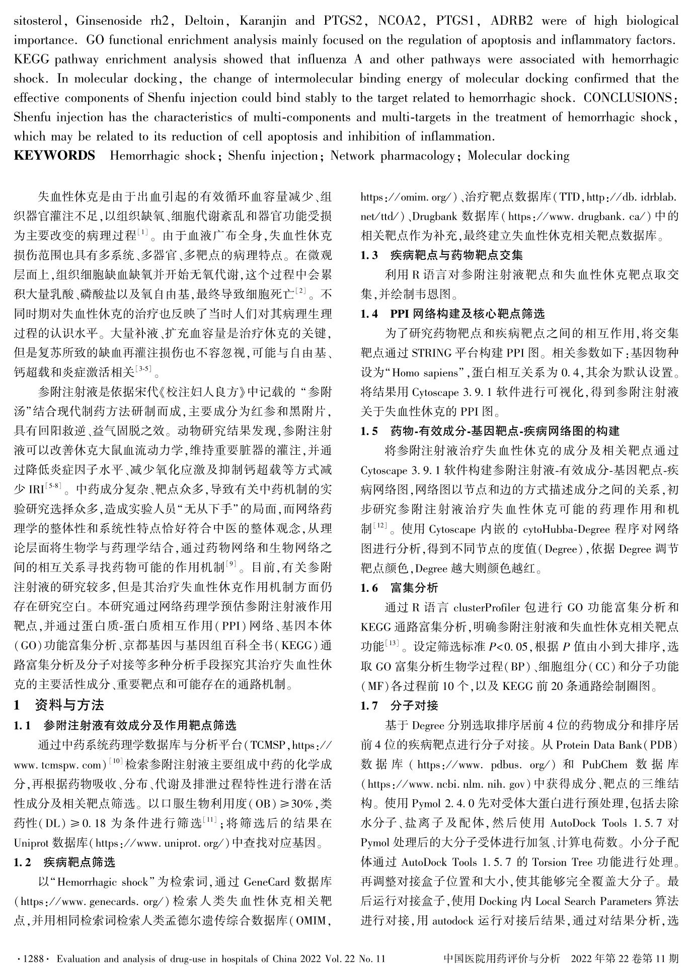 基于网络药理学和分子对接技术探讨参附注射液治疗失血性休克的相关机制