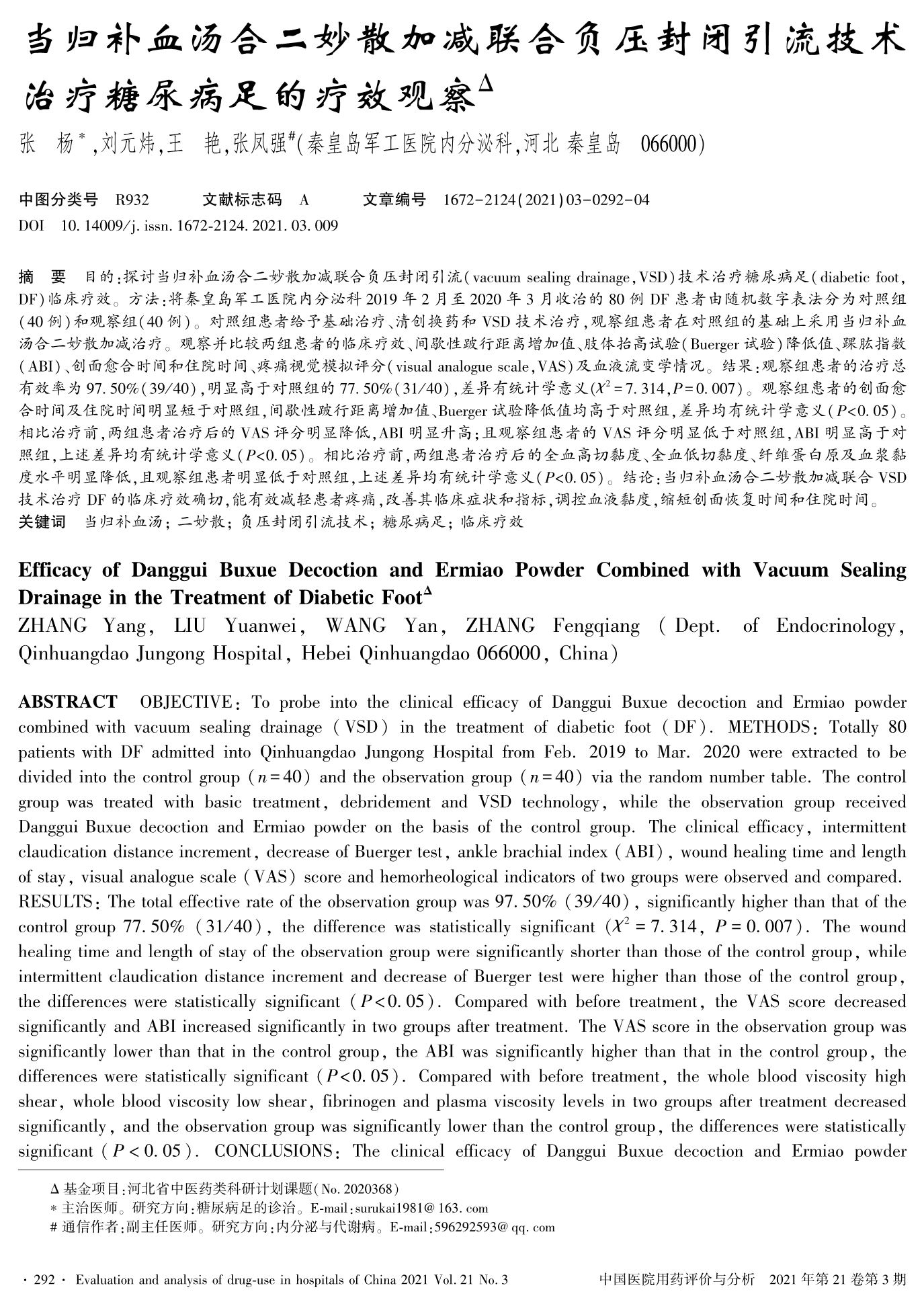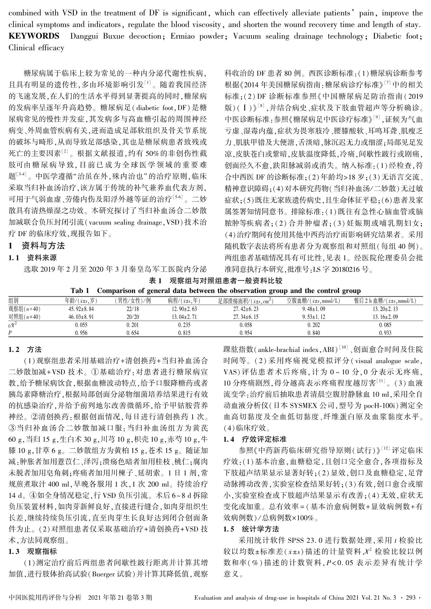 当归补血汤合二妙散加减联合负压封闭引流技术治疗糖尿病足的疗效观察