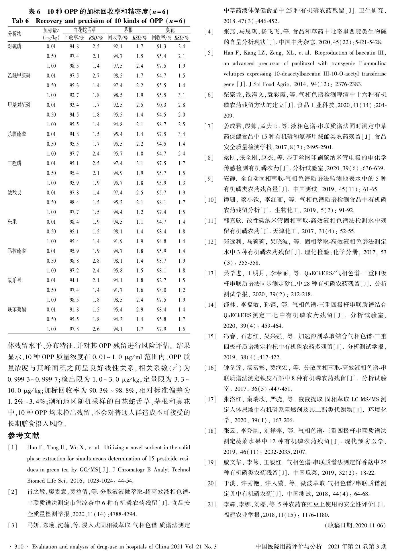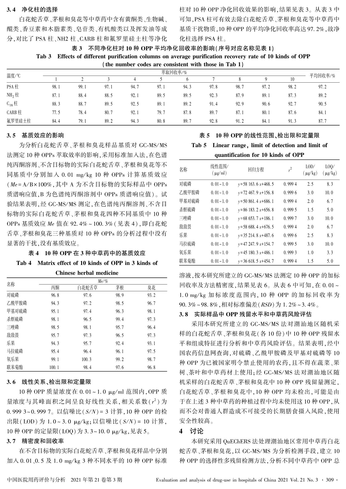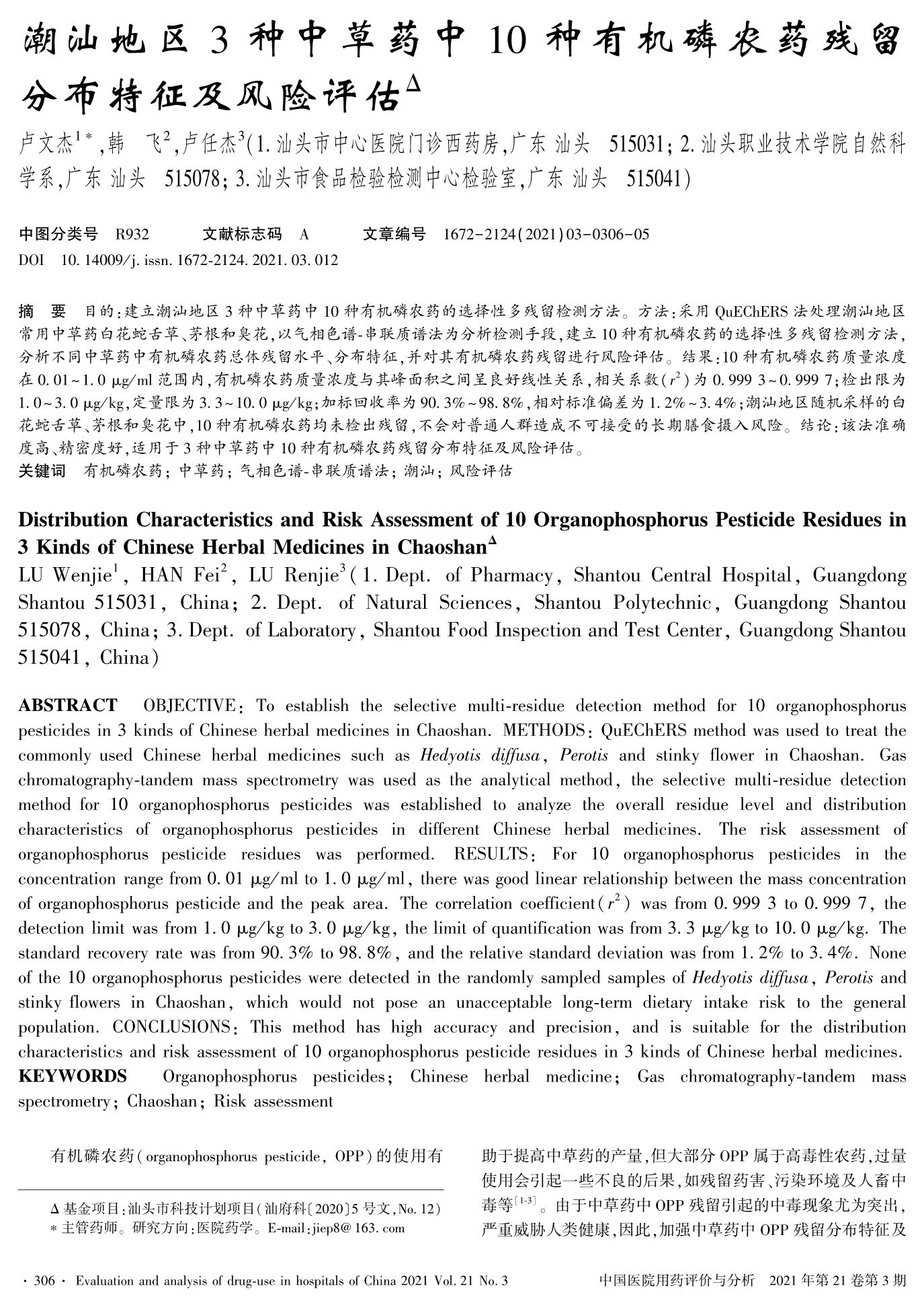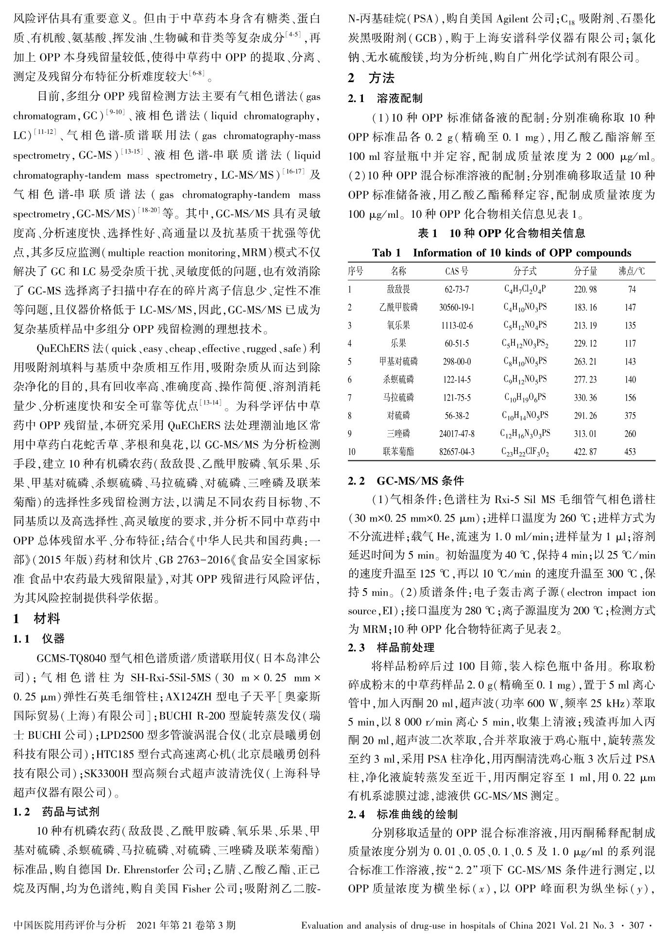 潮汕地区3种中草药中10种有机磷农药残留分布特征及风险评估