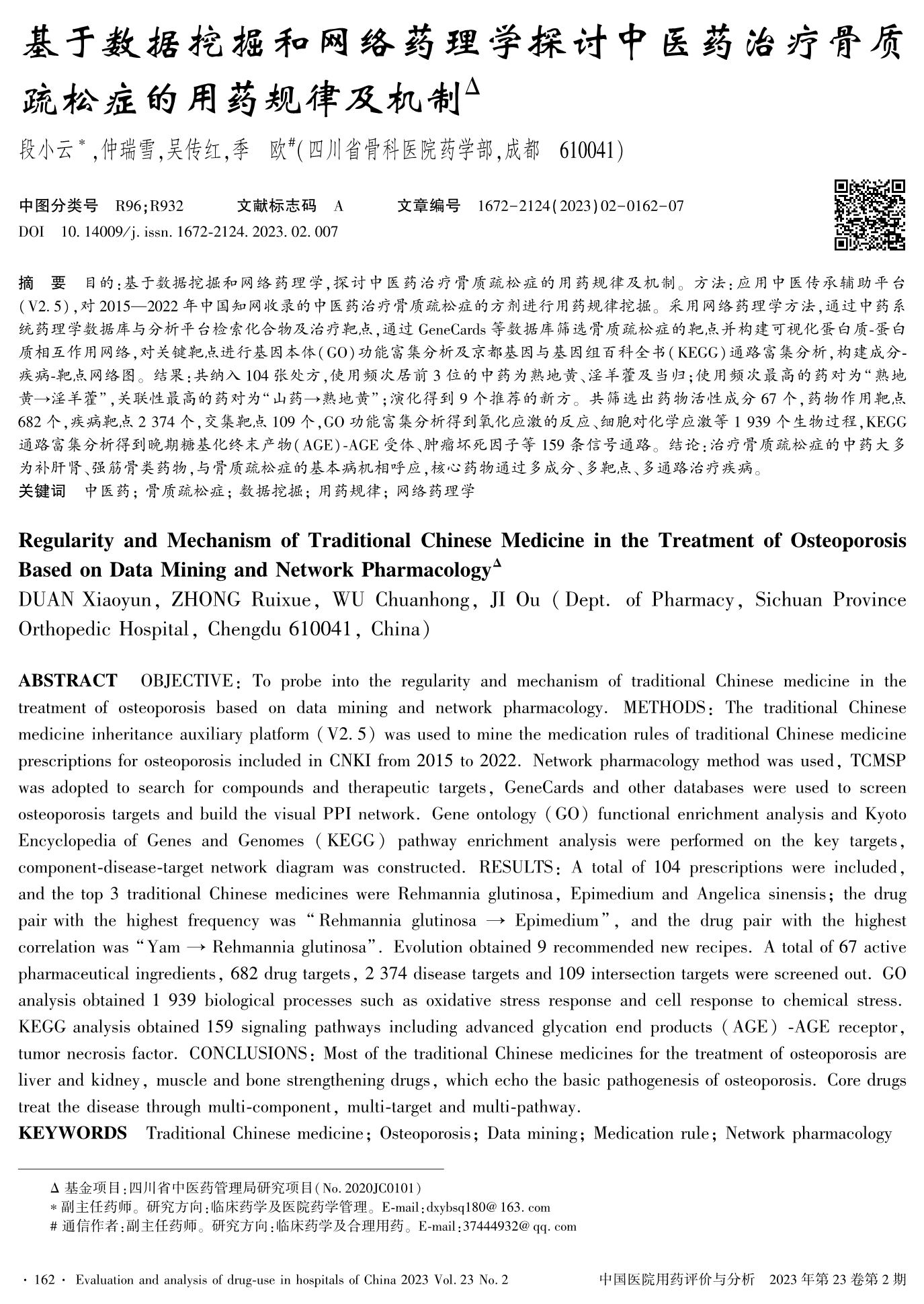 基于数据挖掘和网络药理学探讨中医药治疗骨质疏松症的用药规律及机制