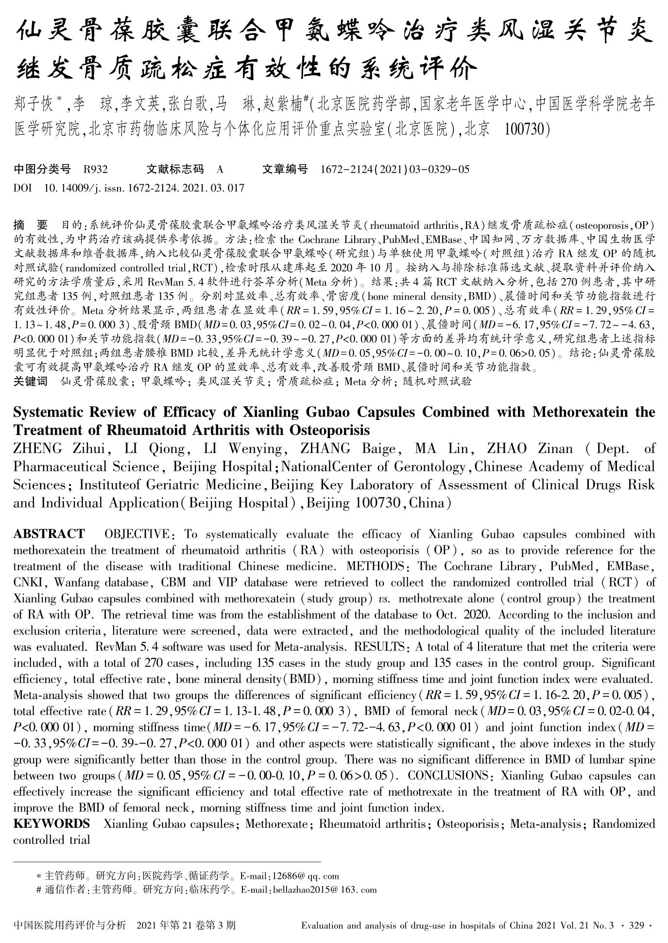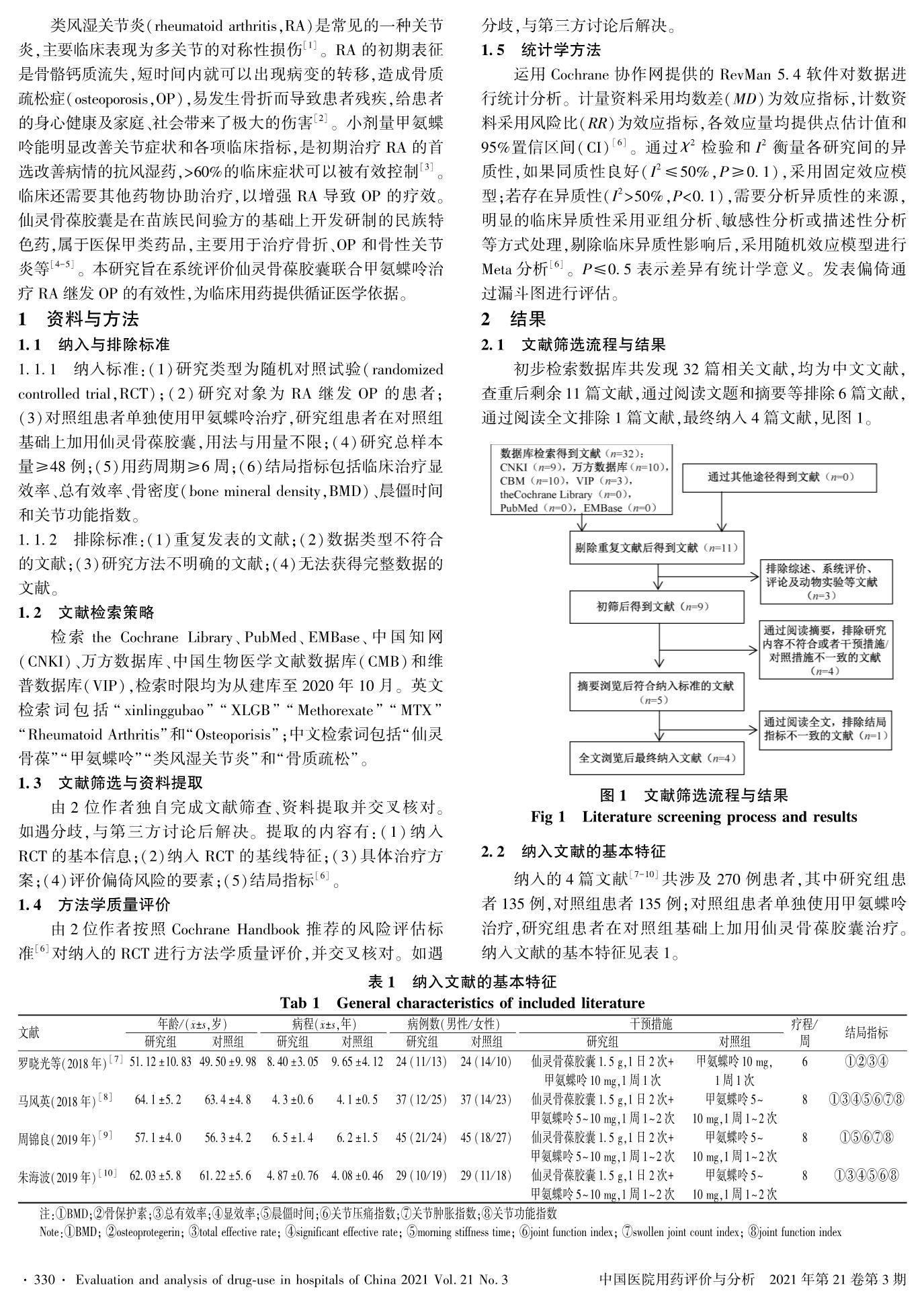 仙灵骨葆胶囊联合甲氨蝶呤治疗类风湿关节炎继发骨质疏松症有效性的系统评价