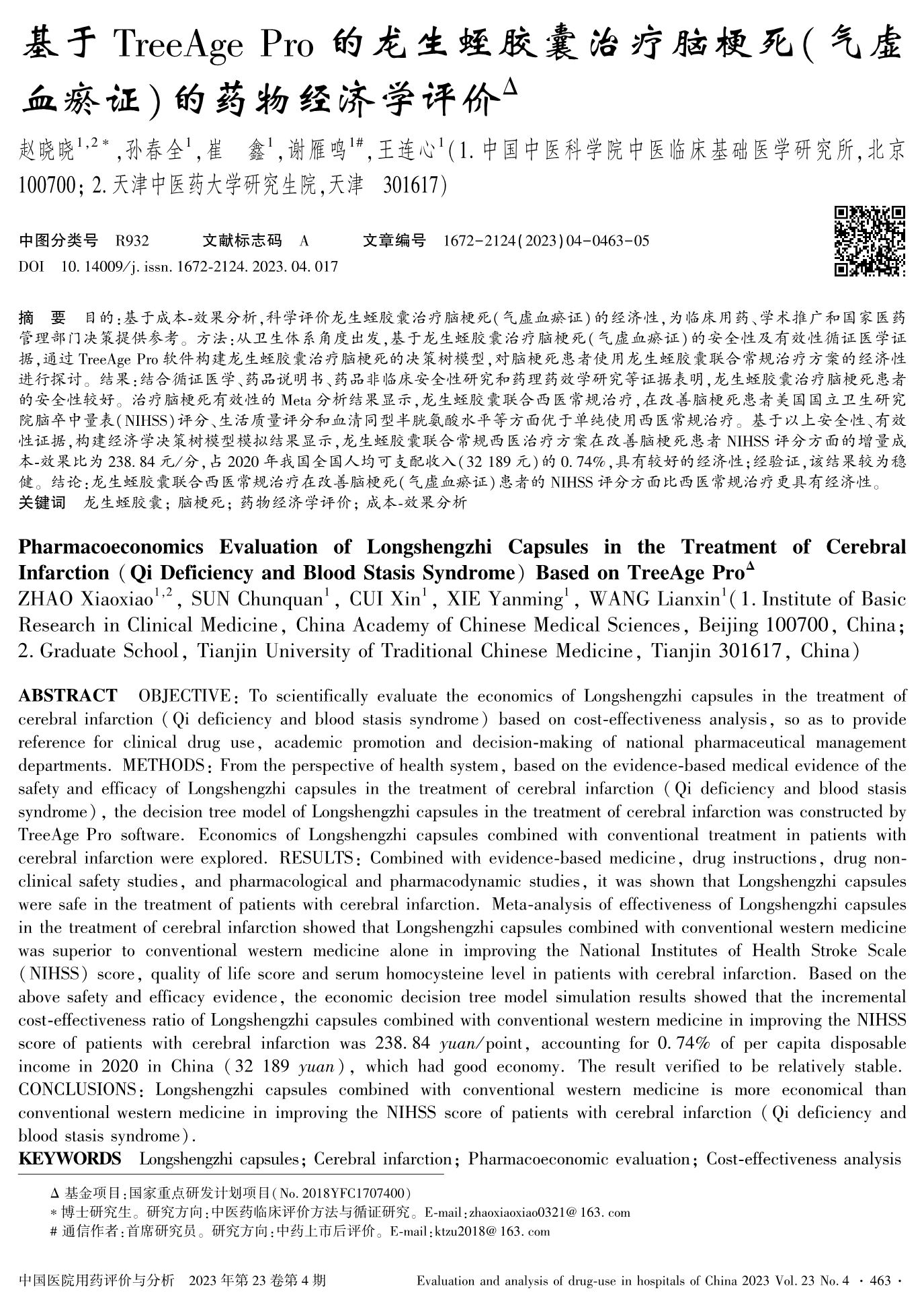 基于TreeAgePro的龙生蛭胶囊治疗脑梗死(气虚血瘀证)的药物经济学评价
