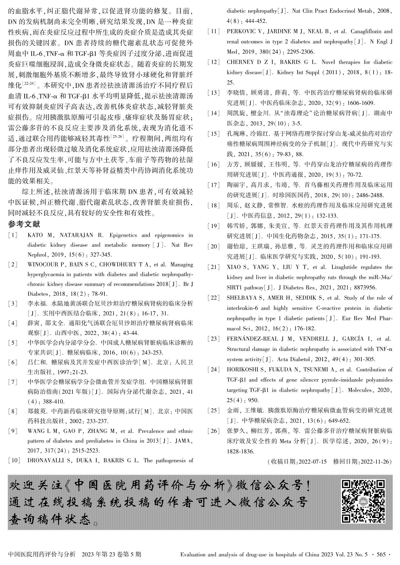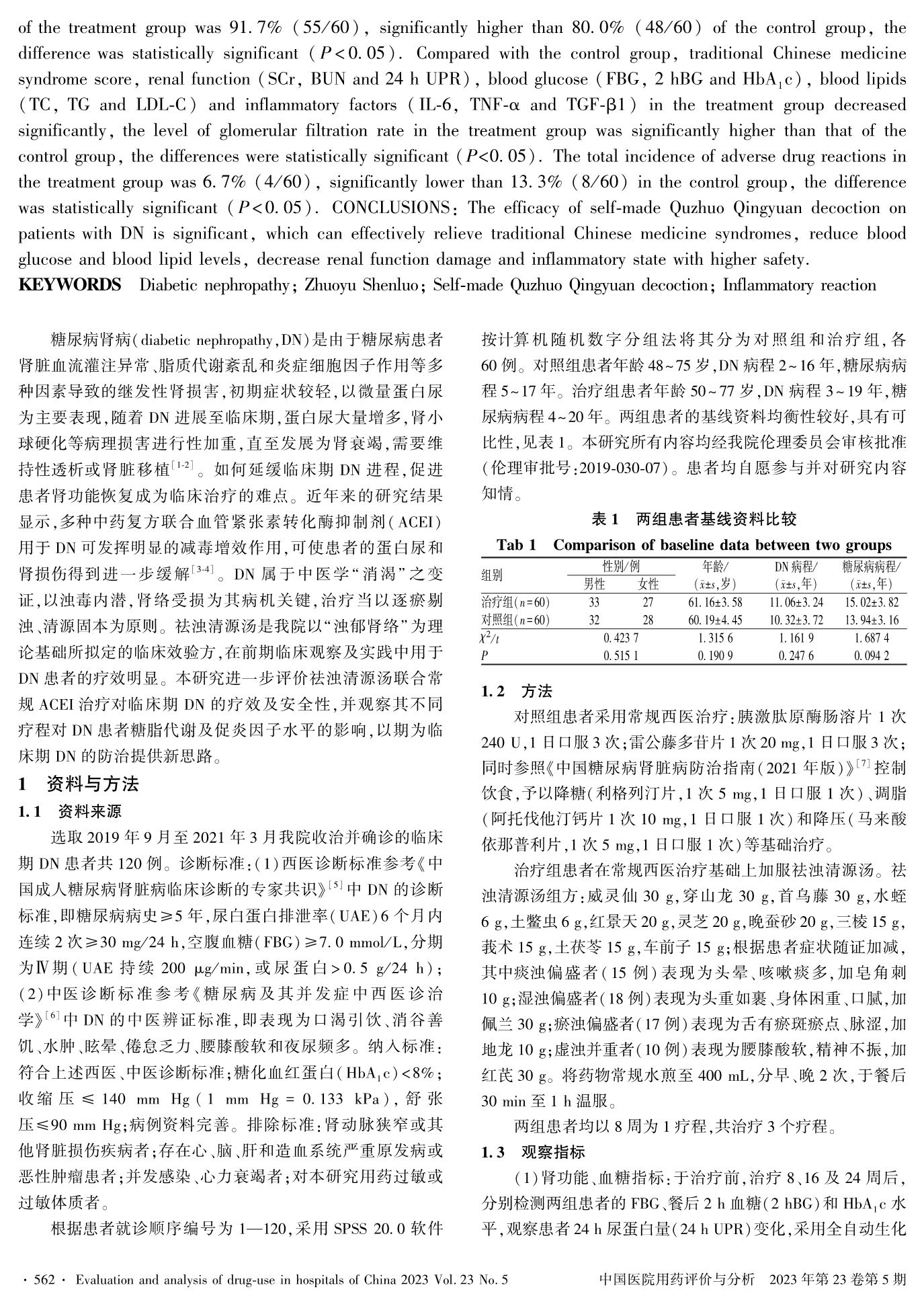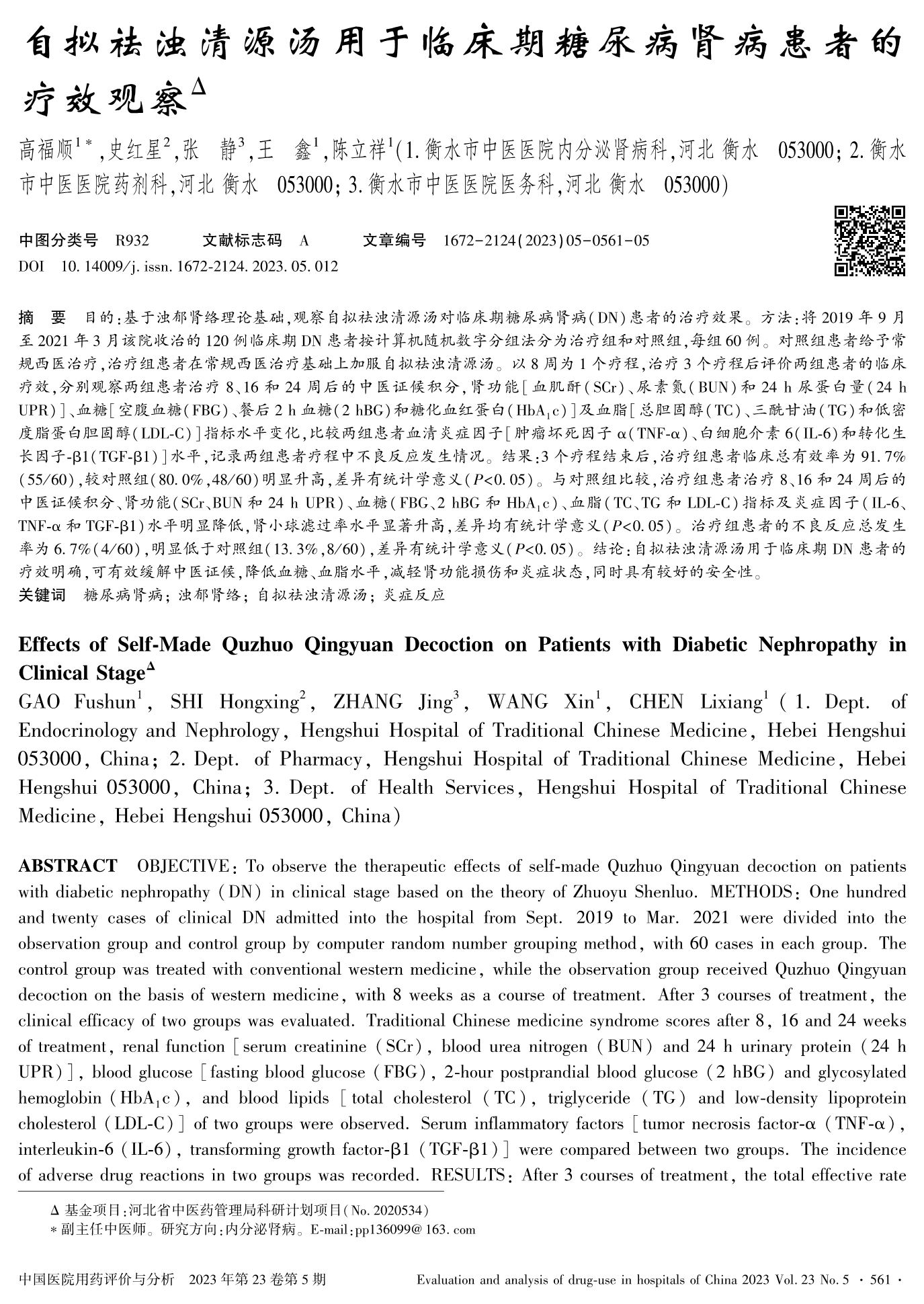 自拟祛浊清源汤用于临床期糖尿病肾病患者的疗效观察