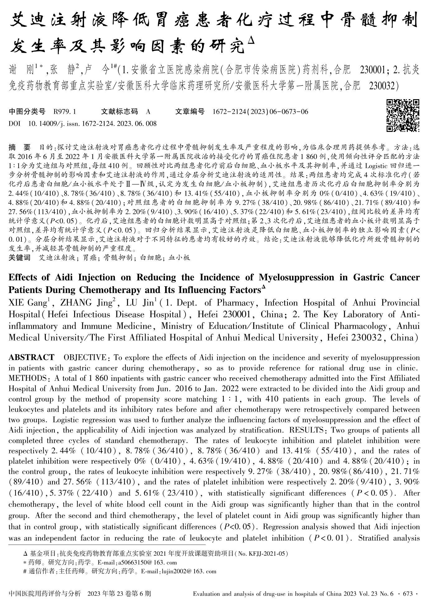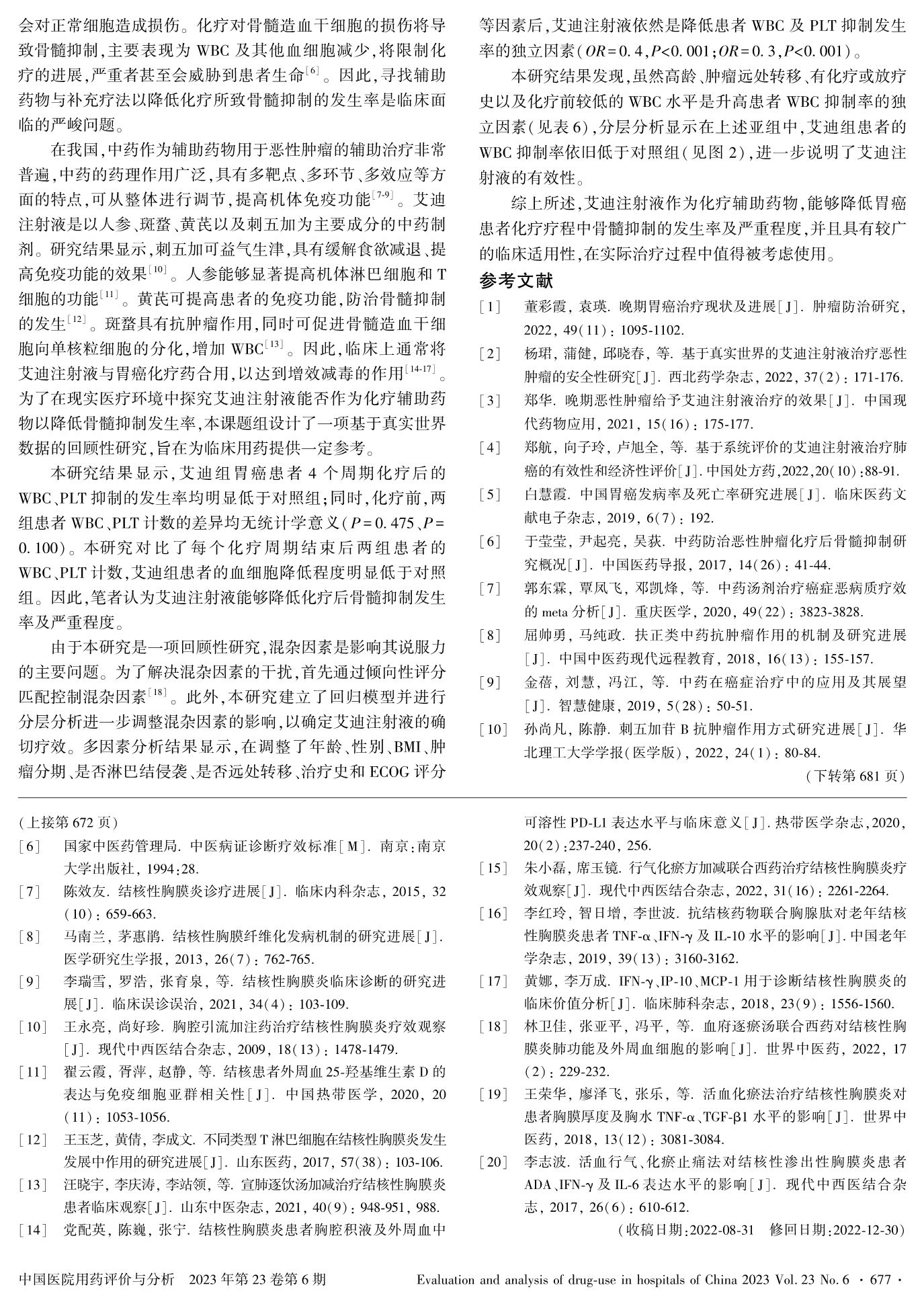 艾迪注射液降低胃癌患者化疗过程中骨髓抑制发生率及其影响因素的研究