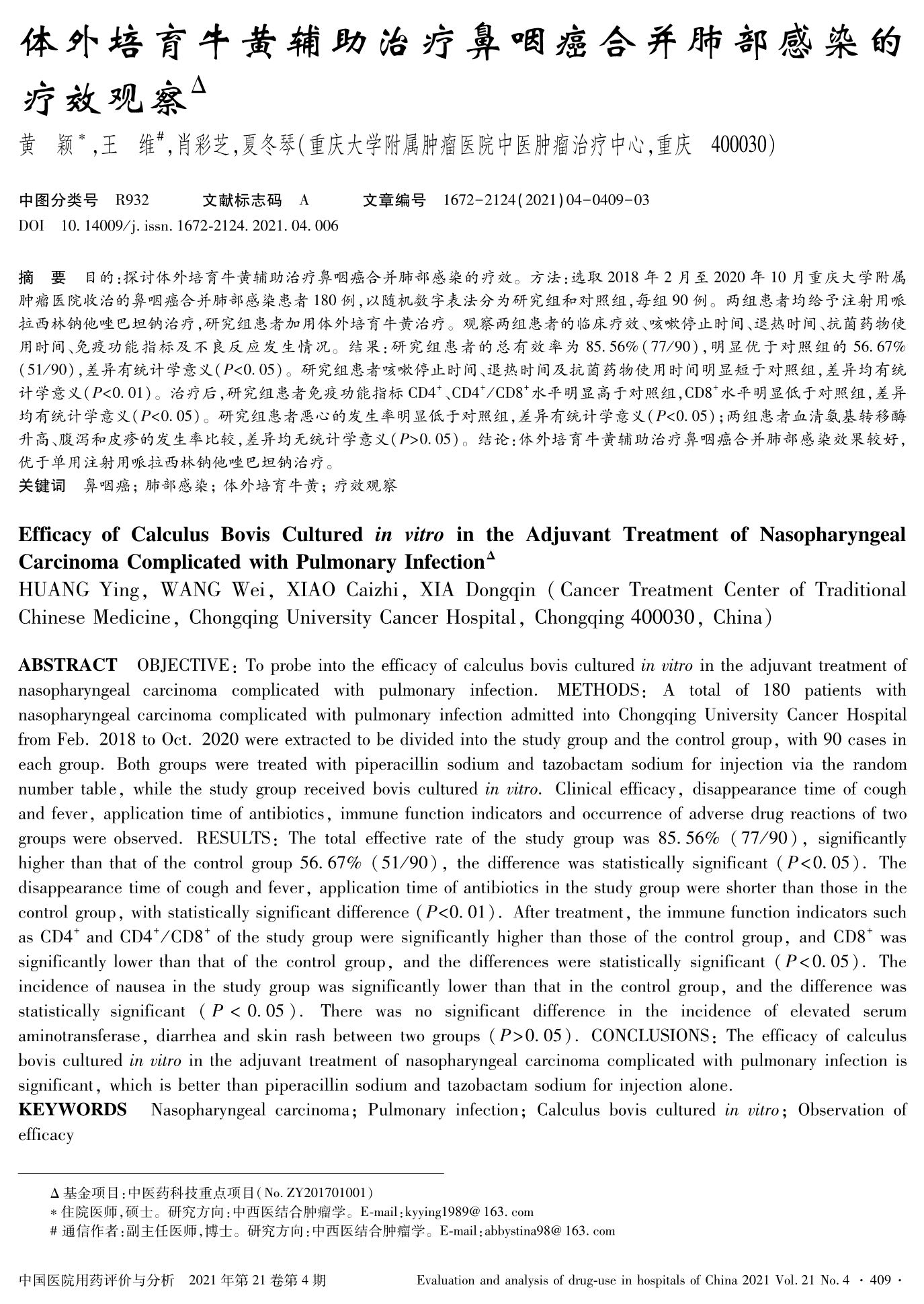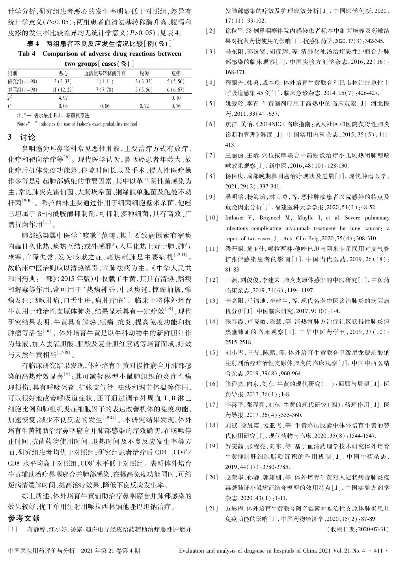 体外培育牛黄辅助治疗鼻咽癌合并肺部感染的疗效观察